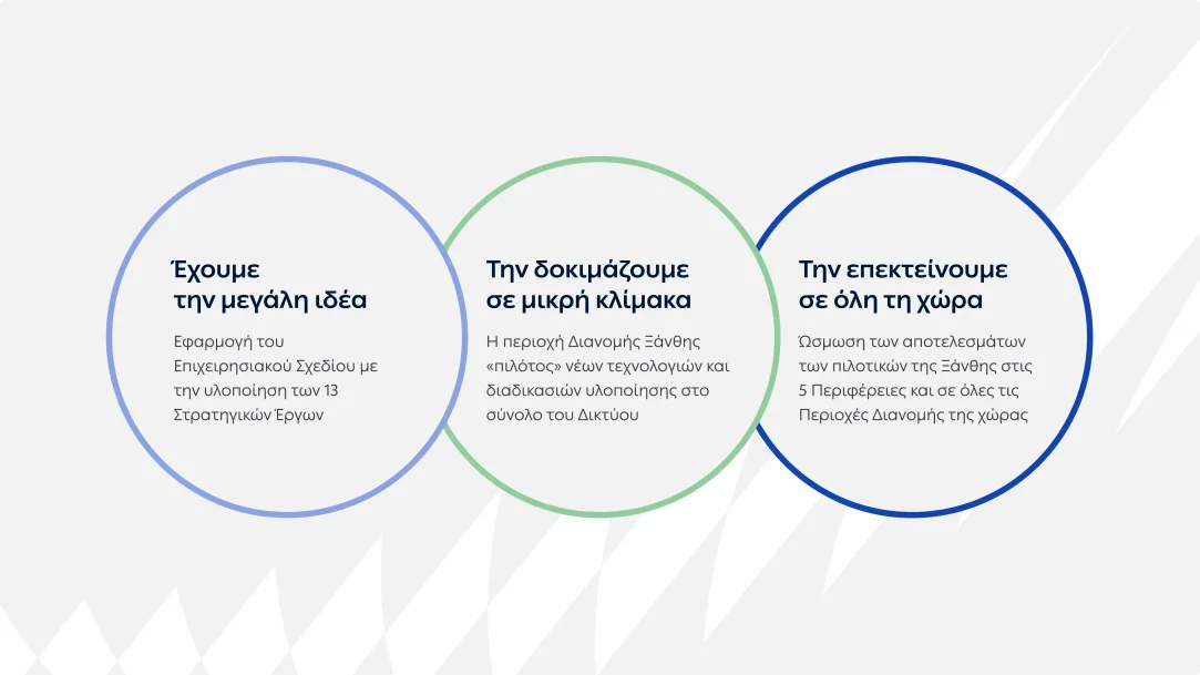 Έχουμε τη μεγάλη ιδέα. Τη δοκιμάζουμε σε μικρή κλίμακα. Την επεκτείνουμε σε όλη τη χώρα!