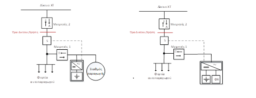 - Σε παροχές ΧΤ Ν. 5, 6 και 7 (Συμφωνημένη Ισχύ 85 kVA, 135 kVA και 250 kVA αντίστοιχα) είναι δυνατή η εγκατάσταση του σταθμού παραγωγής σε συνδυασμό με το σύστημα αποθήκευσης με απευθείας αναχώρηση στον Γενικό Πίνακα της εγκατάστασης.