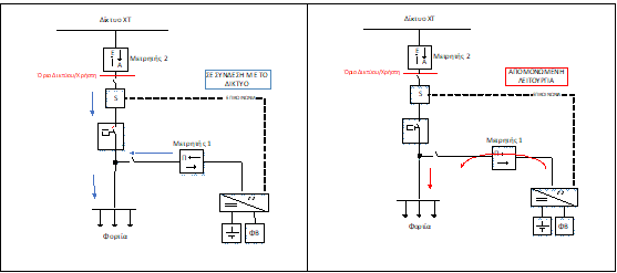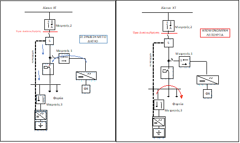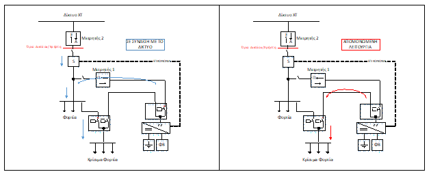Στις περιπτώσεις διακοπών τροφοδότησης από το Δίκτυο, επιτρέπεται η απομόνωση της εγκατάστασης ή τμήματός της από το Δίκτυο, και η συνέχιση της λειτουργίας της με τροφοδότηση από το σύστημα αποθήκευσης ή και από το σταθμό παραγωγής.